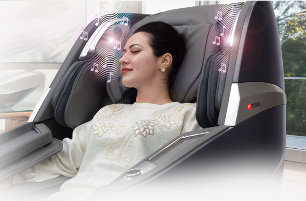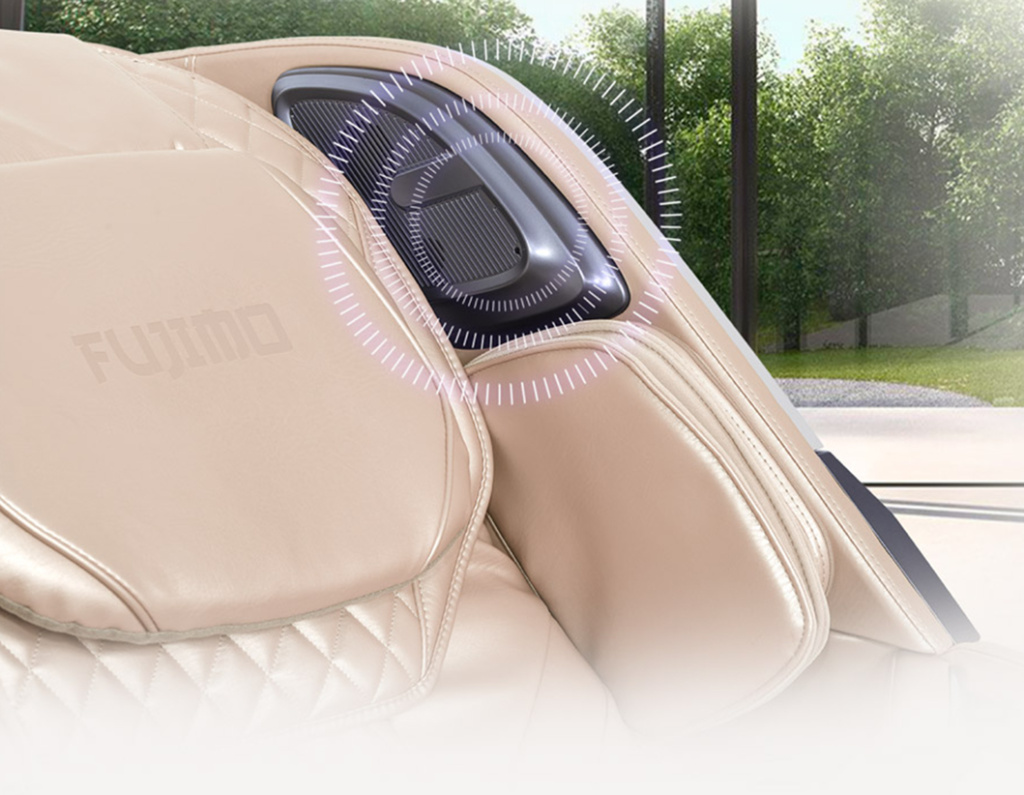 Кресло оснащено HI-FI-динамиками с Bluetooth-синхронизацией. Встроенные аудиопрограммы сочетают массаж с техниками дыхательной гимнастики.