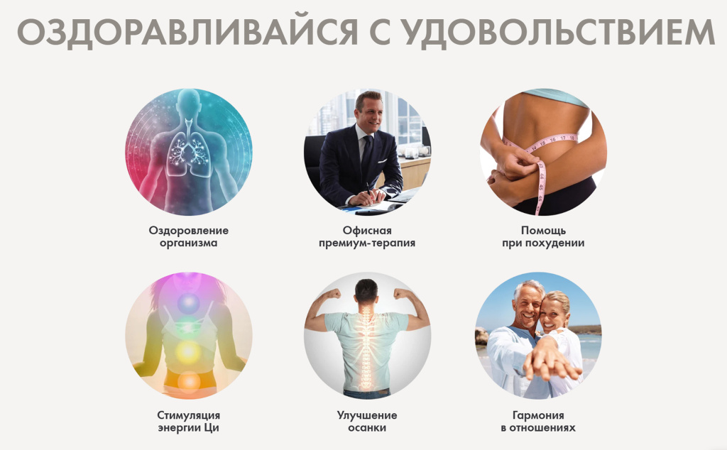 Для домашнего использования, Избавление от боли в спине, Повышение иммунитета, Повышение производительности, Снижение стресса, Увеличение подвижности и гибкости, Укрепление сердечно-сосудистой системы, Улучшение самочувствия, Уменьшение головной боли |