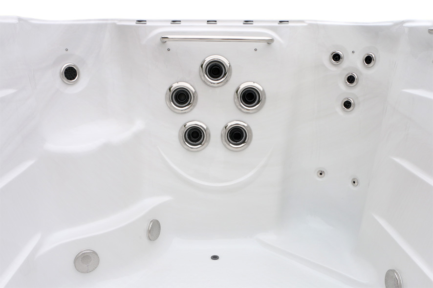 Мощная система с тремя насосами по 2,2 кВт и дополнительным насосом 1,5 кВт обеспечивает эффективный массаж посредством 20 форсунок. Оптимальное распределение водяных потоков гарантирует приятное расслабление для каждой группы мышц.