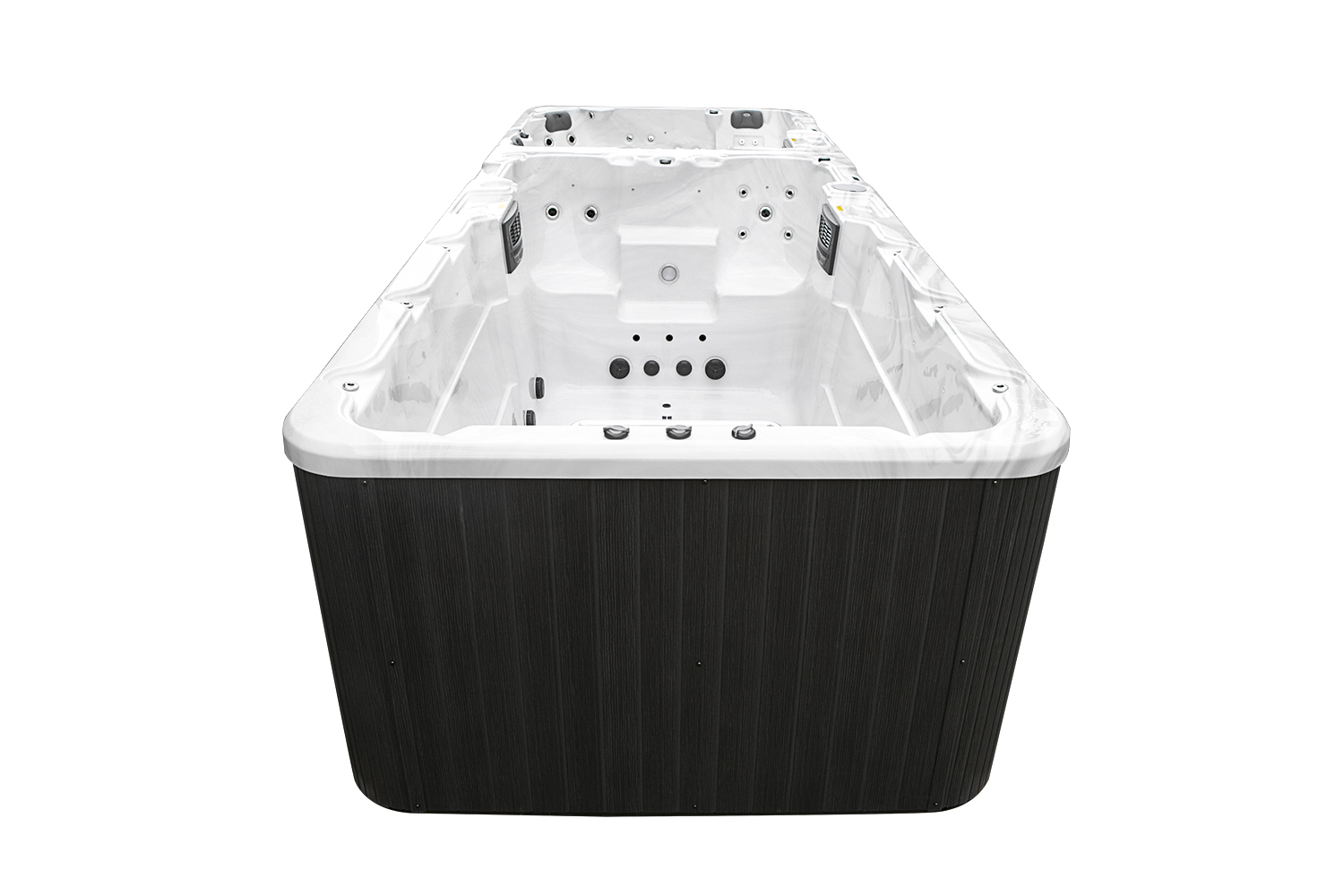 Четыре мощных насоса (два по 2,2 кВт и два по 1,5 кВт) работают независимо в разных зонах, обеспечивая интенсивный массаж с помощью 62 форсунок. Тщательно разработанная конфигурация гарантирует эффективное воздействие на все группы мышц и создает оптимальные условия для плавания.